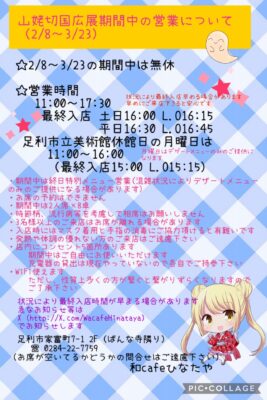 山姥切国広展期間中の営業について☆2月・3月カレンダー