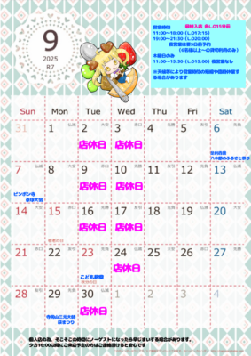 9月のカレンダー